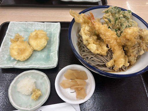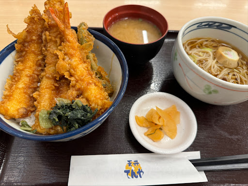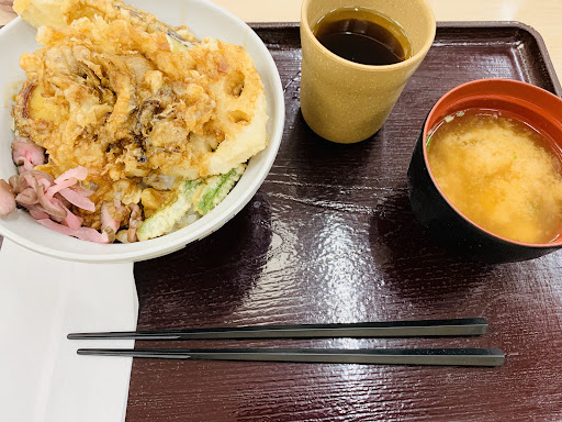 Read more何年前に食べたのか忘れたくらいのてんやに、週末の10:30に入店。イオンモール八千代緑ヶ丘にあるレストラン街の中にあるお店です。11:00からの開店が多い中で、営業時間が早いこちらのお店は貴重な存在でした。 入店したタイミングでは、お持ち帰りのお客さんが店外で複数待っていましたが、店内も食事したままのテーブルもちらほら。朝から天ぷらを食べる人が、世の中にこんなにいるとは正直驚きです。 元祖オールスター天丼温そばセット960円を大盛100円にし、お連れ様の天ぷら定食(定食のご飯はお代わり自由)760円に北海道十勝産のとろろ150円トッピングをタブレットで注文。 天丼のツユの量を選べるのは良いですね。(卓上調味料として天丼のツユが常備されているのは後で気づきました) 注文してから4分後に着丼する提供の早さ。 さっくりとした衣の中の具はそれぞれがジューシー。 海老、帆立、烏賊、舞茸、南瓜、隠元豆、蓮根の7種。味噌汁もついて、チェーン店でこのクオリティは流石です、てんやさん。 温そばにはお麩が入っておりあ、柚子の爽やかな味が天ぷらの油を流してくれるようです。 早い時間の食事だったので、とてもゆったりと食事が出来ました。 きっとランチタイムはとても混むお店なのでしょう。 てんやおじさんが、お店の奥でしっかりと...