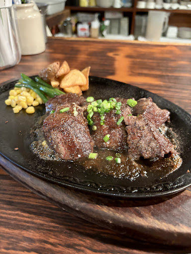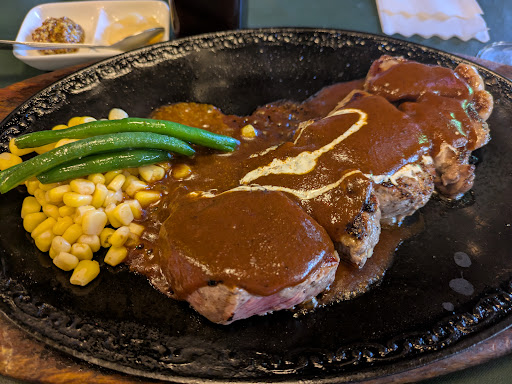 地域新聞か何かに乗っていて来店。 すごく美味しい! 車で来店しましたが駐車場はないと知っていたので 近くの40分200円のコインパーキングに停めました。 (テキサスの右側T字路を左折して突き当たりも左折したところのふたつあるコインパーキングのうち手前。奥は60分400円) 入口は箱やらバケツやらでゴチャゴチャしていますが 内装はアメリカンって感じで素敵です。 小綺麗でデートにおすすめ!ってよりかは 家族でお誕生日とか、ボーナス出たからステーキ食べちゃうか!って日におすすめ!って感じです。 今回はリブロースステーキを私が300g,彼が500g 2人でガーリックライス1つ それぞれAセットをつけました。 お肉は焼き方も選べて私はレア。 すごく美味しかったです。 少しナイフが切りにくかったですが、口に入れると噛み切りやすく、味もしっかりとしていて美味しい、、、。 添えてあるポテトも美味しかったです。 ガーリックライスは自分たちでニンニクとマスタード、ステーキ醤油を使って味つけをするような形式でした。 これが難しい!!彼がニンニクが好きだからと、ニンニクを半分ほど入れましたが濃すぎました(笑)完全に私たちの失敗です。最初はああ...