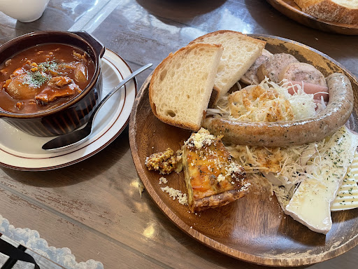 ランチはキッシュ、バターライスオムレット、フレンチトースト、ブリオッシュサンドの他数量限定でその日の肉料理と魚料理があります。 キッシュはベーコンの塩気がよくきいていて、それだけ十分に食事になります。付け合せは控えめな味付けで、バランスが取れていると思います。バターライスオムレットはとろっとしたタイプのオムレットで、ソースを選択することができました。セットでついてきたスープがとても美味しかったです。量は気持ち少なめかもしれませんが、値段はランチとしては丁度よい価格帯だと思いました。