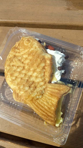 お弁当や、唐揚げなどもこれから出す予定みたい。 OPEN10時〜18時 水曜日定休 もち入りあんたい焼き¥180 クリーム・チョコレートたい焼き¥160 など。