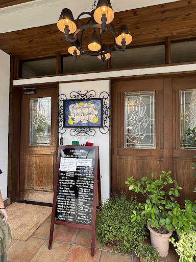 店舗やメニューボード看板も可愛い テラスにはブルベリーにローズマリーと いろんな植物がすくすく育っていました。