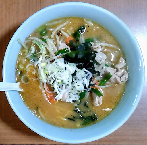 味噌ラーメンは、様々な具材がトッピングされており、かなりバラエティー感があります。 麺は中太のストレート、味噌がしっかりと感じられる、濃度濃い目のラーメンです。