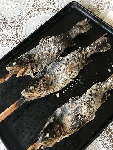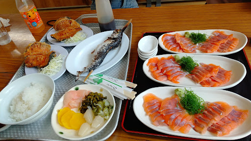 Read more今日は、ヤシオマスを食べることが、目的で来ました。あらかじめ、インターネットで調べて、お店イチオシの金精川定食を、食べに来ました。まずは、会計でメニューを言って、料金は先に払います。その時に、番号札を渡されて、テーブルにつきます。あとは、セルフサービスで、水とかお茶を、持って来て、ひたすら自分の持っている番号を、呼ばれるまで待っています。駐車場に車を置いた時から、県外ナンバーが多く、ましてや、家族で来ているようなので、待つのだろうと覚悟しました。待つこと約1時間でした。番号を呼ばれて、カウンターに取りに行きます。持って自分のテーブルにおいて、考えたのが、塩焼き1匹、刺身とからあげで1匹、これはすごい。刺身は、サーモンです。こんなにうまいのかと思いました。からあげは、骨から全部食べられて、素揚げでしょうゆまたはソースをかけて、食べるとすごくうまいです。自分はしょうゆにしました。そして、塩焼きは、塩加減が良く、すごくうまかったです。最初、ごはん大盛りにしてもらおうと思いましたが、普通で良かったです。腹一杯になります。そうそう、みそ汁も、具がますです。ごちそうさまでした。帰りに、土産で、ヤシオマスの味噌漬けと塩漬けを、買って来ました。見る...