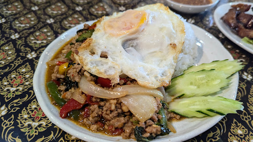 Read moreお店はビルの2階です。 駐車場はビルの北側(1階のとんかつ屋さんとは反対側)のスペースに数台分あります。 カオガパオムー(豚肉バジル炒めごはん目玉焼乗せ)、ヤムウンセン(春雨サラダ)などは、注文時に「辛くしても大丈夫ですか」と聞かれるので、OKと言えば本格的な辛い味付けで提供してくれます ムーデッディアオ(干し豚肉の揚げ物)は噛むほどに旨味が出てきて、ビールのつまみにピッタリ。 パッタイもとても美味しく、ボリュームがあり、大満足でした。