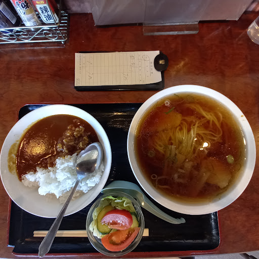 ラーメンは業務用のスープだが水加減間違えたのかなみなみと注がれていた したがって薄い… メンマ、チャーチューネギだが申し訳程度に載っている まさに「茶色いラーメン」! 麺はつるっと入ってくる 今風のしばらくしたら固まりそうな麺と違い、幼少の頃食べたような感触 これぞ中華そば!という感じ チャーハンは(最近店のようにチャーハンの素ではなく)胡椒が聞いていて美味しかった 紅ショウガがのっていたら満点だ 味は薄いわけでもなくしっかりと炒めてある サラダがついていた たまにあったよね、こういう店