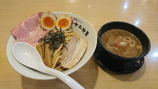 Read more2025/11/某日 焼津に十二分屋が出来てたので初訪 夕方18時前に来たがお客さん二人・・・ 静岡や牧之原はもう少しお客様いたが? 以前はカツ丼屋だった様な?店内は 昔のお店のままで、広々していていい 入口入って券売機がありその後中へ 今回は魚介つけ麺を注文した。 大盛サービスやライス無料のサービスは なくてトッピングで、買いたすスタイル つけ麺は太麺でつけ汁は魚介の濃厚な 味でちょいしょっぱいが不味くはない メンマやチャーシューも悪くない。 スープ割ないのが残念かな。 大盛にした...