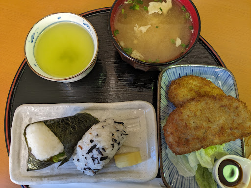 Read moreもう10年前から いってます 母がお茶かったりしていて パンをかい おむすびセットがあるよと 寄りだし 昔はおにぎりと味噌汁のセットありじゃがいも半身ありでした この頃はセットなく おにぎりと味噌汁 単品で(米が美味しい) アジフライや黒はんぺんフライ唐揚げからチョイスし いただきます カレーライス🍛 茶そばあります サラダも あとソフトクリーム あんみつ パフェもあります 飲み物も まあどれ食べても外れありませんよ😚 ちょいとカフェタイム最高やね☺️ お店スタッフ良い方ばかり 長いこと変わらず いつ行ってもなんかホッとします い...
