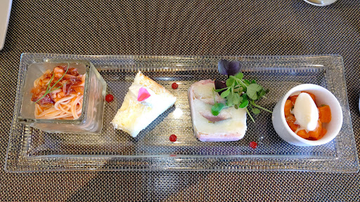 緑の壁に、フランス国旗がはためく店構え。 駐車場は10台くらいかな。 ランチ2,700円。 スープ、前菜、フォカッチャ、メインディッシュ、デザート、ドリンク。 メインディッシュは牛、豚、鶏、魚から選べる。 スタッフの細やかな気配りが良い。メニューの説明を紙に書いてくれた。 料理も絶品で、味だけでなく色とりどりの野菜、華やかな香り、炭酸を活かしたものや、アイスクリーム化など五感に訴える料理で、これはどんな味なのかな?と口に入れるまでのワクワクがある。 前菜は5種、デザートは9種もあって、色んな味覚をちょこっとずつ楽しめるのも高ポイント! 気づけばあっという間に90分で、満足。 大切な人、お世話になってる人を連れて行くのに...