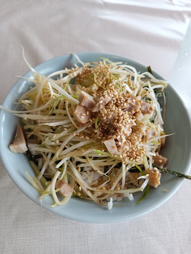 Read more券売機で食券を購入するシステムです。店内は厨房をカウンターで囲むレイアウトにテーブル席が有り窓やドアなど開けられていて換気を積極的に行っています。しかしカウンター席にはアクリル板などの仕切が無く少し気になりました。 ネギ味噌チャーシュー麺(1150円)の食券を購入し店員さんに渡すと麺の硬さの好みを聞かれ普通でお願いしました。チャーシュー5枚にシラガネギ、ワカメに海苔といった具材。背脂が効いてスープがとても美味しいです。麺は中太より少し細めのストレート麺で喉ごし最高です。腰が有りスープに良く絡み好きな味わいです。もう少しネギの量があったら嬉しいですね!チャーシューはとてもジューシーでネギをチャーシューで巻きスープに浸していただくと味と食感がたまりません。 とても美味しかったです...