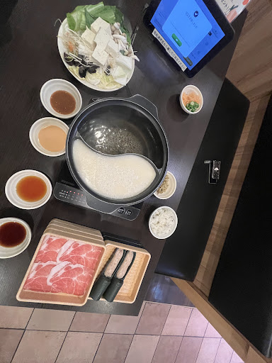 Read more2025.09 1人でランチに行きました。 思ってるよりお一人様が多い印象。 席は奥側の狭い入口に2テーブルの所。 団体用の場所を簾で区切ってるから、簾向こうの人と距離は近く半見えだから気まづい。 簾で区切られてるがイスが繋がってるため荷物(貴重品)の扱いは注意。 自分の席は配膳ロボがテーブル横まで入ってこれないので来たら立ちあげって取らないといけない。隣のテーブルと共同入口のため配膳ロボがくると入口が塞がってしまうので注意。 自分は1人だったので注文した物がくるまでは席にいるようにしていたが、隣の席のカップルは2人で食材を取りに行ってる間に配膳ロボがきて…勝手に触る訳にはいかないしの状態が何度もあった。 店員さんの接客はよかった。 セルフの食材の補充を頼んだら笑顔で素早く対応してくれたし、「お声がけありがとうございます」って言ってくれて、自分の脳内変換は「教えてくれてありがとう」ってなって言いやすい対応だった。 隣のテーブルの片付けをする時も声かけしてくれて隣でガチャガチャやられても嫌な気持ちにはならなかった。 また来るなら...