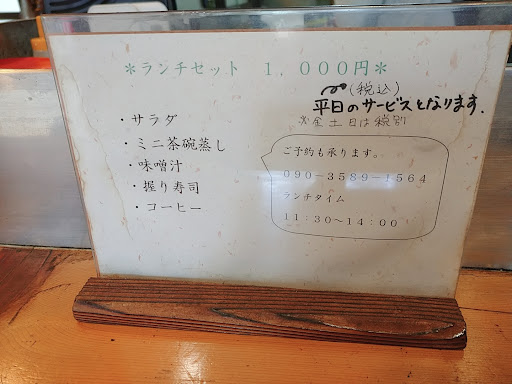焼津市は西焼津駅南口近くにあるお寿司屋さんです。 ランチセット1000円を頂きました 金曜日を除く平日は税込で1000円金曜日を含む土 日曜は税別になります、つまり金曜日と土日は税抜1000円プラス税金と言う事ですね。