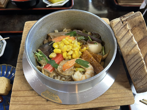 Read more釜飯専門店の五目釜飯美味しかったです。お米の量は多分1合、茶碗2杯ちょっとくらい。どの釜飯も具材が大きく見栄えがきれいで食欲をそそります。お通し(この日は山かけマグロ)や先付けもあるので食べ応えがありました。茶碗蒸しは柚子が効いていて具材も海老や筍がゴロゴロして美味しかったです。人気があるので昼も夜も予約(同時に注文)をしないととても入れないとのこと。 強いて言うならもう少しおこげが欲しかったです。6人で注文しましたがおこげができていないも...