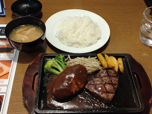 ハンバーグS+ステーキのランチを注文。 最初に届いたサラダのドレッシングの香りが良く期待しながら待ちました。 少し待って届いたお料理はとても美味しかったです。 ただ自分がお昼の最後の客だったみたいで店員さんは半ば休憩モードだったのかお話中でホールには出ておられませんでした。 しかたないのでご飯のおかわりもベルを鳴らしてお願いする感じ。 もう少しゆっくり食べてまったりしようかと思っていましたがお邪魔になりそうだったので早めに退店しました。