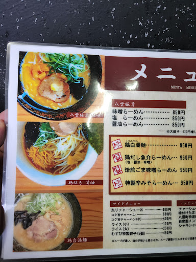 Read more何回かリピしました。八雲近辺では美味しいです。夜営業は17:30からで、19:30ラストオーダーとのことです。何かの事情(スープ切れ?)で早く閉店することがあります。 鶏白湯麺950円→程よく濃厚でおいしいです。 魚介豚骨塩かつおラーメン950円→チャーシューの上に乗ってるやつ含めてメニュー内で一番おいしかったです。豚骨も程よく濃厚です。 カレーラーメン950円→白湯+カレーラーメンの味です。他店のカレーラーメンよりまろやかで美味しいです。 餃子→ジューシーでクセが無くおいしいです。 接客も良いです。札幌〜函館間のドライブの間に寄るのも良いかなと思います。卓上に、おろしにんにくがあります。R6.5訪問時点で値段上がってたので、...