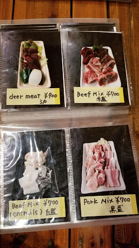 Kagoshima Yakiniku Horumon feels like walking into a cowboy saloon from a movie, all wood and vintage charm—except instead of a cowboy, you get a wagyuwoman with fast hands and a ranch-style attitude! She was full of local energy and made the place feel alive. The meat? Good value for sure, but nothing to make you sing love songs to a grill. They were out of the deer (which was already just basic deer, no fancy cuts), and the wild pig was a bit too wild on the jaw muscles. Still, a fun stop if you're in the mood for meaty vibes and Western-style quirks...