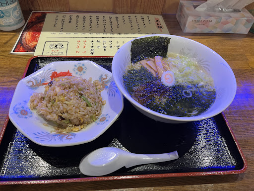 夜訪問。 この辺りは駅前と言えど夜は人が少なく先客はなし。 店主とおばあさん?の2人でアットホームな雰囲気。 洗練された雰囲気はない。 山田ラーメンと半チャーハン。 ラーメンは海苔風味で磯の香りのする上品な塩ラーメン。 麺は細めでアッサリしていて食べ飽きない。 海藻類は多くはないがいい出汁がでている。 チャーハンは刻みチャーシューもアクセントとなり美味しかったが、塩が多すぎるのか少ししょっぱかったのが残念…