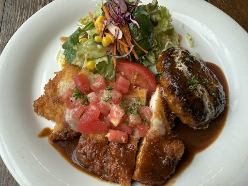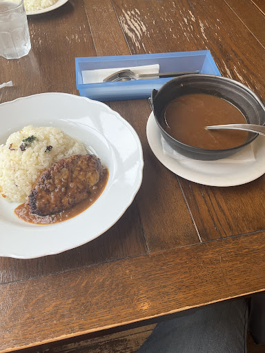 Read more山鹿にはカフェやイタリアンのお店が点在する中、知人の紹介で伺った。 地理的には山鹿から菊池や大津に向かう道沿いにあるので、温泉に行く前後どちらかに伺い易い。 サラダ<ハンバーグ<カレー<デザートの順番が美味さの順位である。好みの問題ではなく。 カレーは美味しい。昭和によくあったルーだけ後がけするタイプは好ましい。香辛料が効いて野菜も煮込まれているのだろう、甘みと辛みのバランスが良いが酸味が足りない。 デザートのプリンは美味しい。