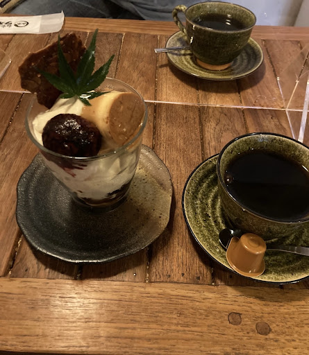 栗ぱふぇは渋皮煮、かためのプリンが乗っていて、中はコーヒーゼリーやピスタチオのアイス、とてもこだわっており、最後まで飽きずに美味しく食べれました。