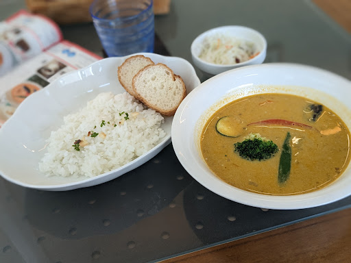 Read moreランパスを使用しての初訪問。平日だが空いており、店内のBGMも相まってゆったりと過ごせました。 ランパスのココナッツスープカレーだけでは若干足りないかなーと思い、コーヒーとデザートも注文しました。コーヒーのブレンドは、日替わりのデザートとの相性抜群で、とても美味しく大満足です。 レジの横にはマドレーヌなどの焼き菓子三種類が五個入りで売られていたので、せっかくだからとスイートポテトを購入。これがずっしりと重く、家に帰ってお茶と一緒に食べると、ボリューム満点でとても幸せでした。 駐車場から出入りしに...