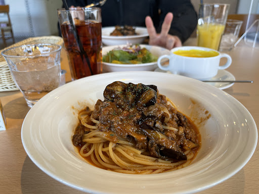 雰囲気はまさにファミレスといった感じです。 女性店員もファミレスのアルバイトかな?という感じの応対。 こんな時間帯にも関わらず席が半分以上埋まる状況。 店内奥にはテラスっぽい席もあり、写真で見る限りそっちの方が雰囲気が良さげな感じで、実際にそっち側に客が座っていたのも頷けますね。