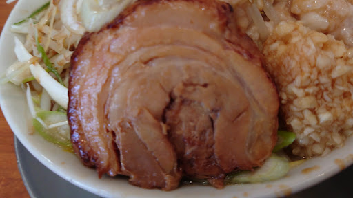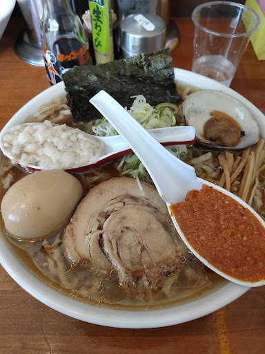 Read more令和1年4月、ローカルガイド仲間の口コミで見つけて初訪問。あれ?以前違うラーメン屋だったのにいつの間にか変わってたんだな~とか思いながら11時20分頃到着。たまたま駐車場が一台空いてて入れたけどほぼ満員でした!平日の昼前にしては凄い集客力だな~と感心しました。こういうG系?のラーメンは今回で三件目くらいの素人なんですが、スープが濃すぎず薄すぎずちょうど良い塩梅で一番食べやすかったかな~黒烏龍茶200円税込みも注文して飲みながら食べてました。今回は意味がわからなかったのですが、次回は生卵注文して麺を絡めて?食べてみようかな。 令和1年6月訪問。お冷やはセルフサービスで、券売機の右に給水機があるので、順番がきて店内に案内されて着席してから、券売機で食券買う人が居ないときにお冷取りに行きましょう。 2年3月久々に訪問...
