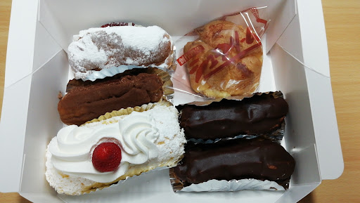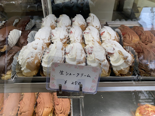 Read moreテイクアウトで購入しました。 シュークリーム1個、生シュークリーム1個、チョコ生シュークリーム1個、バナーヌ1個を購入し、(初めて購入したのですが)エクレア2個おまけして頂きました。 エクレアはパリパリのチョコとたっぷりのクリームがバランスが、よくて美味しい。 生シュークリームは生地の上に施されたは化粧が高級感と満足感を高めてくれます。また、クリーム(チョコクリーム)にスライスされた苺がクリームと抜群に合います。 バナーヌはスポンジケーキの上にパウダー上の中には砂糖がちりばめられて、バリっとした新しい食感が楽しめます。 たっぷりの生クリームと苺、中には丸ごと入ったバナナとの組み合わせが美味しいです。 シュークリームはシンプルに、たっぷりのクリームと生地のフワッとした感じが凄く美味しい。 どの商品もたっぷりのクリームが入っていながらも、ほど良い甘さで美味しかったです。ご馳走さまでした。 人の良さが滲み出てる店員さん、私の時はエクレア食べるかい?と聞いておまけをして頂きました。嬉しいサービス...