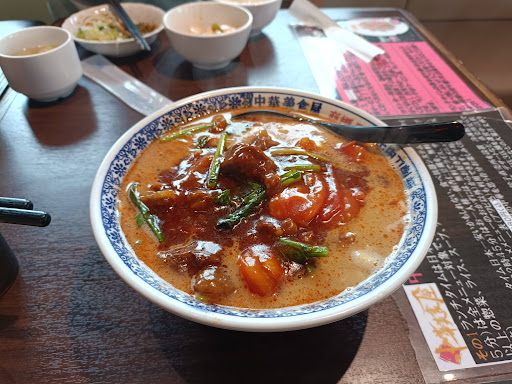 Read more夜に大人4人で行きました。 食べ放題(2480円)とソフトドリンク飲み放題(550円)で1人3,000円くらいでした。 食べ放題にするには、必ずソフトドリンクまたはアルコール飲み放題を注文が必要でした。最初からそのつもりだったのでモーマンタイでした。 どのくらいの量くるのかと思ったのですが、どの料理もちょうど良き量きたので、いろいろ頼むことができました。 麻婆豆腐、唐揚げ、棒餃子、エビチリ、海老マヨ、小籠包、ザーサイ炒め、豆苗炒め、角煮、刀削麺、そして最後に胡麻アイス。くらいでしたかね。 中国の山椒、ホアジャオが効いているので、麻婆豆腐は辛かったですね。どれも香辛料が効いていて美味しかったです。角煮も日本のものとは違って美味しかったです。 私の1番はエビマヨ。奥さんは、ゴマ好きで、デザートのゴマの食感が残るゴマアイスに感動していました。 コースも4人から頼めたのでコースでも良かったかも知れませんが、食べ放題は好きなものばかりを頼めてドリンクついて3,000円なので、私は食べ放題の方が良い気がしました。