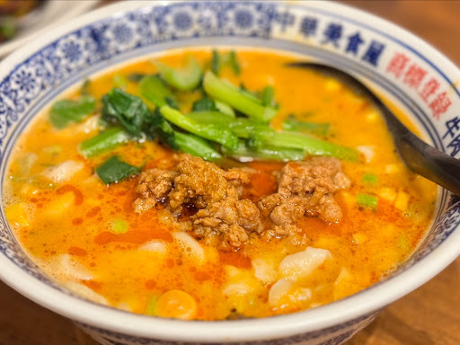 元祖・麻辣刀削麺はメニューに辛さ2となっていたので、辛さ苦手な自分は辛さ少なめでお願いしました。快く対応してくれたのはありがたかったです。 麺はとても太いですが、固くなく、スープもよく絡んでこれまた美味しい! 少し酸味もあり、思っていたよりさっぱりとした味わいで、最後まで美味しく味わえました。