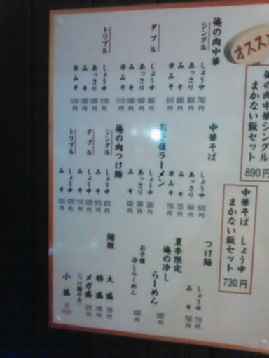 なかなか行けませんけど、行くとワクワクする。いつかお土産用のグラム売りのチャーシュー気になってます。券売機で選んでから席に着きますが、じっくり選びたいときに次のお客さんがくるとあせります。(私は優柔不断なので)外にある看板のメニュー表である程度の目星をつけてから入るかんじにしています。チャーシューの枚数シングル(2枚)、ダブル(4枚)、トリプル(6枚)、で選べたり、麺の固さ、油、野菜の量でしたかな。好きな感じに注文できたと思います。私は中々人見知りなので言えませんが… ラーメン後の杏仁豆腐口の中さっぱりですかな。 そしてふらっと2020初麺はココです。今年になって早2週間弱。券売機を眺めるとメニューがシンプルになっておりましたな。 今回は肉中華と賄い飯を頂きました。食べごたえのある麺をワシワシと感じながらネギとの相性や厚みのあるチャーシュー、メンマ、味玉くんをしっかりしっかり味わって…賄い飯のほうは、ご飯の味わい良かったです。 久しぶりでしたので...
