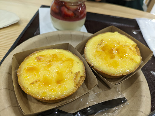 Read more道の駅蔵王にあるプリン屋さんです。 お店の前のオープンスペースにはいくつかの椅子とテーブルがあり、そちらでイートインをしました。 今回は「プリンソフト」(770円)、「焼きプリンタルト」(440円)、そして「コーヒーセット」(330円)を購入しました。 「プリンソフト」は、プリンの上にたっぷりのソフトクリームが乗った贅沢なスイーツで、見た目のインパクトがあります。ソフトクリームはさっぱりとしていて、濃厚なプリンとの相性が抜群でした。 「焼きプリンタルト」は、バーナーで表面が炙られていて、カリッとした食感と滑らかなプリンのコントラストが絶妙で、美味しかったです。 プリンは美味しかったのですが、オープンスペースの雰囲気がちょっと残念です。もしお洒落な店内だったらもっとスイーツを美味...