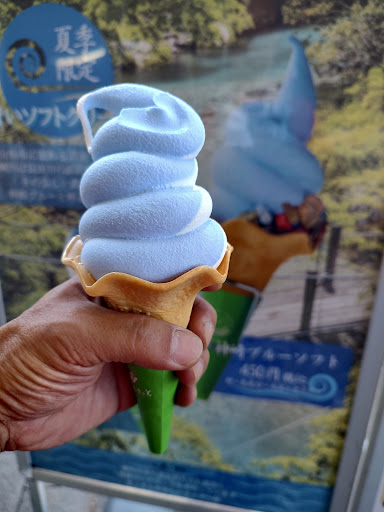 Read more流石のJA山県バスケットの飲食スペース。 店内での食事は、入口のチケット購入から。 それまで店のまわりあちこちに配置されたポスター写真とネーミングのセンス良さもあり、食欲そそられるメニューが豊富。 並ぶと1時間待ちもざらなくらいだから、あきらめてもバスケット店内の惣菜おにぎり焼きそば弁当などの持ち帰りもできるから安心。 それよりなにより、店の外にあるテイクアウトコーナーも充実メニュー。 例えばこれ、神崎ブルーソフトクリーム。 このセンスの良さに、夏の神崎川へ行く度に立ち寄ります。 味はサイダーときいて、ガリガリ君のイメージだったけどまろやかなテイストでぜんぜんいける。 なんなら美味しすぎる。 でも、青い着色料は絵の具だよねと、そこは目を瞑ろうと思ったら、ポスターに植物由来と書いてある。 どこ...