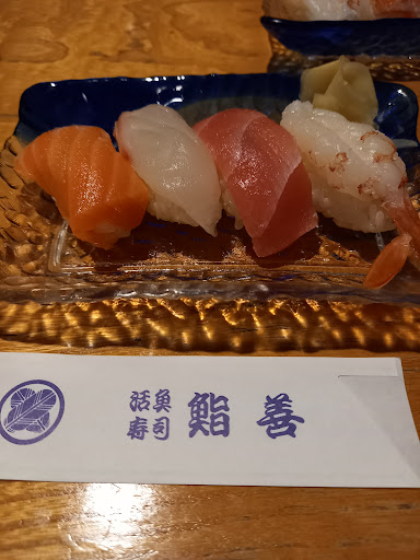 お祝い事兼ねて、市内の寿司割烹店を探していました。お手頃価格で口コミ参考で夕食ご馳走に伺いました。初めての方、鮨善定食お薦めと案内あり、鮨善定食頂きました。 定食は、御造り/焼き魚/お刺身/お寿司/味噌汁の順で頂きました。 途中でおかみさん手作りのきゅうりお漬け物をサービスで頂き、味噌汁の後は、🍒シャーベットをご馳走になりました。店主さんおかみさんがとても優しく良い感じと美味しいお寿司を頂きました。次回は、カウンターで会話して頂きた...