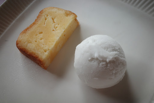 お料理は、前菜から雲丹のゼリー?にしたような上品な味の濃厚な物、 とうもろこしの濃厚冷製スープ、 帆立のソテー、 白身魚のソテー、 メインは、ステーキか鴨のソテー、 デザートは、手作りのケーキや手作りのシャーベットなどなど…