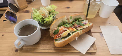 I decided to try something different and ordered the salted mackerel and tomato banh mi. It included a consommé type soup as well as a salad. The bread was fresh and crispy, the portion may not be enough if you've been snowboarding all day But it does leave room for one of their many dessert options.