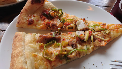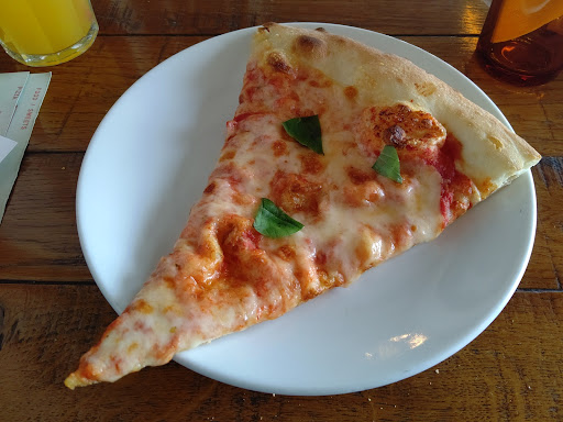 Read moreアメリカ風というのでしょうか、厚めの生地のピザがいただけます。 常時6種類くらい並んでいて、うち1種類は週替わりのメニューのようでした。 ショーケースに出来合いが並んでいるのですが、オーダー毎に再度オーブンで焼き直してくれますので、出来たて同様のものがいただけます。(その分、多少時間はかかります)