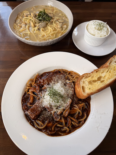 パスタ美味しかったです! クリームスープも美味しくてホタテ、アサリが入っててクラムチャウダー好きにはよいです(^^) ただ、最後にスープを残さず飲もうと思うとやはりちょっと味が濃いので、それだけで飲もうと思うと大変かもです。 味付け濃いのが好みの人にはぴったりです。