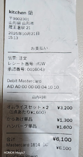 After took hot bath from Shimoyu public bath at Zao onsen, we were standing right in front of nice with open and friendly setting Kitchen 蘭, we were welcoming by the young beauty lady and having good lunches. We ordered the special locally homemade hamburger and special yamagata imoni. Hamburger was cook after we ordered, it was full juicy flavor , and fluffy, same as imoni( taro and meat, mushroom, potato) it was fresh, delicious and truly special of Yamagata prefecture. Enjoyed our food and had conversations with the owner. Thank you for the meal and wish her the best of success. Nice, stylish and young style restaurant for Zao onsen. We will...