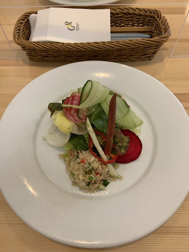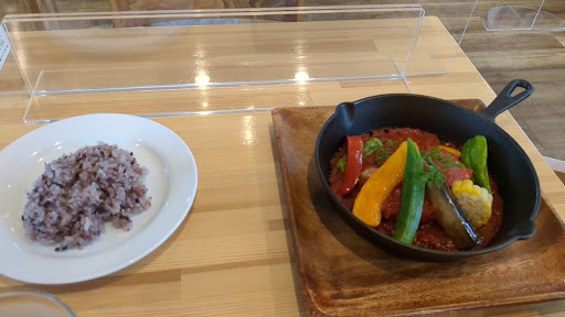 Read moreオシャレなオーガニックカフェ。 以前は1500円だったランチが税込1750円になっていた。 しかも、1750円なのはオムライスとカレーとパスタだけで、ハンバーグやトマト系のパスタはプラス150円だった。 プラス110円でドリンクが、プラス350円でドリンク&ミニデザートがつけられた。 食べ放題のサラダ、惣菜は7.8種類位。 どれも素材にこだわっているのがわかるが……ほとんどの惣菜に私の苦手な生玉ねぎが入っていたのが悲しかった。ひじきや、おから、キヌアにまで……(+_+) 注文したカレーはもちろん雑穀米で野菜の火通りはレアなのもあった。雑穀米の上に乗っているのはリンゴだった。 もう1つのオムライスももちろん雑穀米。 回りの2種類のソースを着けて食べるのだが、ソースが足りず最後はただのご飯+卵焼き。もう少しソースが多目だといいのに…… 土曜日の11時半前には入店し、客はまだいないけど予約席で6割はうまっていた。時間次第では予約したほうが良いかも。 それと、自家製ビネガージュースはとても薄くて味も酸味もなく残念だった。他の気になるドリンクにすれば良かった。 忙しいのに接客は丁寧で何度もお水を注ぎに来てくれた。惣菜やサラダは箸があったら食...