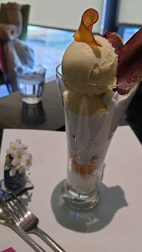 デザートを食べに来ました~( ・ω・)ノ 店内は売店とカフェに分かれており、2階はギャラリーになっているようでした 珈琲パフェと紅茶パフェを注文 どちらも生クリームがもったりしてるのに甘 過ぎず、冷たいアイスによく合いました! 珈琲パフェにはシフォンケーキが乗っていて、コーヒーゼリーが全く甘くなかったのですがそれもまたアイスに合うので美味しかったです(´∀`) 紅茶パフェは紅茶アイスが塊で3つほど乗っていました 中段から一番下まで紅茶ゼリーが入っており、冷凍みかんが良いアクセントになってました! ランチメニューもあったので普通に食事もできるみたいですよ\(^o^)/