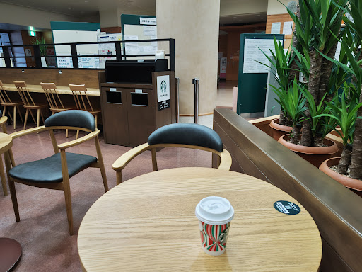 Read more病院内にあるスタバ。平日日中であれば正面玄関から見える位置にある。しかしながら訪問した日は日曜日。土日も営業しているが外からはどこにあるかわからなかった。休日面会の列があったので、守衛さんに尋ねたらそのままお通り下さいとのこと。利用する際は病院なのでマスクは必須だろう。 ATMの前を通り抜け、正面ロビーで見つけてコーヒーを購入することができた。イートインスペースはないのかと思ったら、少し離れた待合室の一角に用意されていた。 休日の閉まっている外来の場所は当然ながらとても静か。私が行ったときは利用客は勉強にいそしんでいる一人のみだった。病院なので休日は少々全体的に暗いがそれは仕方がないところ。 なおイーカートンスペースにはごみ箱と紙ナプキンぐらいしかないのでシュガー等必要があれば受取カウン...
