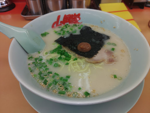 Read more今日は近くに用事があり初めて青田の山岡家さんに朝ラーしにお邪魔しました。 朝ラー、味薄目・脂無し・麺柔らか目でオーダー。 同時に3組入店してましたがワンオペながらもバタバタせず落ち着いたオペレーションでした。 ラーメンの味や質はやはりチェーン店ですので同じですが、青田山岡家さんは朝ラーに着いてくる梅ペーストが別皿ではなくトッピングして麺の上に載っていました💧 「梅ペースト無し」と伝えてなかったので・・・(どうもあのスープに梅は苦手なんです) 食べてみて、やはりこのクオリティで520円は素晴らしいです。 次は朝ラー以外で食べてみたいです! ~~~~~~~~~~~~~~~~ いつもは西田店を利用しておりますが、近隣に用事があり青田店さんにお邪魔しました。 入って直ぐ風除室の左右に券売機があります。(2回程利用していますが完全に頭から抜けています💧) 以前は朝ラーメンしか食べていませんので今回は大好きな「醤油ラーメン」 +クーポンホウレン草に。 入店して左側のカウンター席に着席しましたがなんとなく広めに感じました。あと天候の加減もあるのかも知れませんがちょっと店内が暗く感じました。 でも店員さんは明るく元気で丁寧。 さすが山岡家さんのスタッフさん。 迅速に提供された醤油ラーメンはいつも食べているバッチリ旨いラーメンでした。 旨かった...