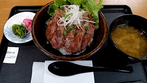 9時OPってなってましたが一律フードコートの店舗は10時OPでした。 旅行とかで朝食の予定にすると大惨事なので注意が必要です。 目的の米沢牛MIX丼3300円いただいてきました。 持ち帰りはちょっと安いです。あとコロッケはフードコートとは別に売り場がありましたが そちらも開くのは10時からでした。 注文はタッチパネル券売機でカードもQR決済も可、食券機を店員に渡したらブザーを渡されて完成したら鳴るやつです。 提供は注文があってから火を通すのか少しかかります。牛丼屋のように盛り付けてすぐ提供とかではないです。 店内飲食だと味噌汁と漬物が付いてきます。ご飯大盛(+50円)も肉倍増(ほぼ倍の値段)もできます。 肉は全く脂を感じずするすると食べれれ柔らかくタレは甘みがあり付属のワサビと七味でピリッといけます。 写真で見るより少なめなのでご飯位は大盛りにした方がいいかなと思うのと 食べてると通路側に店舗がある分通りがかりで見て思ったより高いねー、なんか高いねーって話が聞こえてくるので フードコートスタイルに...