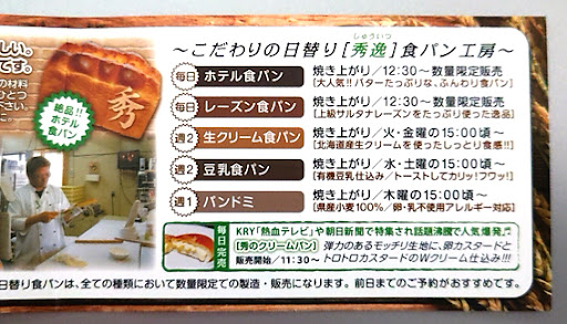 口コミやショップカードから「クリームパン」が一押しで、KRYや朝日新聞等で紹介され人気のようです。 次回行くときにはぜ...