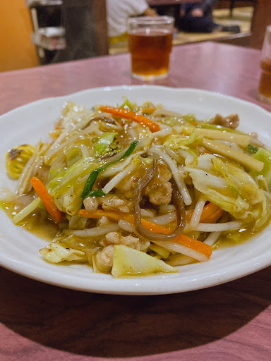 予想通りシャキっと野菜にとろとろ餡かけが太めの焼き麺に絡んで美味しい(´꒳`)