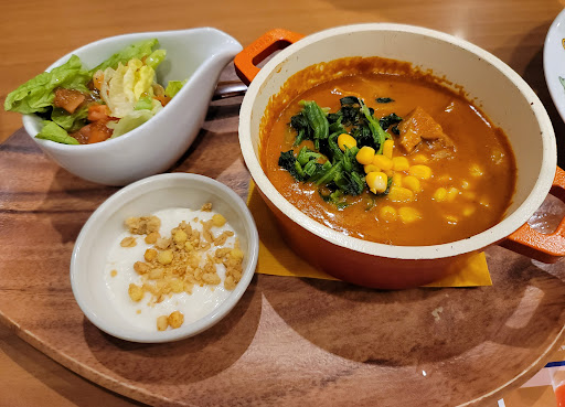 Read moreカリフォルニアタコサラダ429円、魚介とかぼちゃのあふれるクリードリア1089円、手絞りモンブランパフェ1089円。