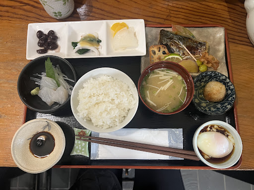 Read more日曜ランチに伺いました。 ◆接客 11時20分に到着。 暖簾がでていたので入店したら、いらっしゃいませもなく「11時半からです」と言われたので、再度外に出てまつ。 お年寄りの方がやっているお店みたい。 接客に消極的?慣れないから店主対応に少し驚く。 席についてメニューやお茶もないのに「で、注文は?」と聞かれた。 となりのお客様が気を使いメニューをくれましたが、店主は無言。 基本的にいらっしゃいませ!に接客的でもないし、なんなら気づかないフリをしている感じにも見える。 常連のお客様が多いようで、お店より客が気をつかっているのかな。 席数が少ないためすぐに満席になり、その後きた方には、積極的に帰してました。 かなりびっくり。 注文から届くまで30分以上待った。 ◆味 悪くないし、身体に優しい和食です。 鯖の西京漬はおいしかった。