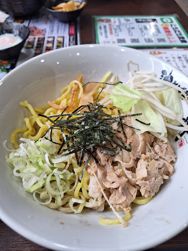 Read more日本どころか世界に展開する油そば屋さんです。 美味しかったのですがメニューが多すぎて決められない笑 無双油そばとネギマヨ卵丼をいただきました。 『無双』はこだわりの麺を2種類使用しているとこが売りのようです。 ツルシコの麺とモチモチの麺が両方はいっており非常に面白い仕上がり。 正直、まぜるとわかりにくいので選ぶスタイルでもいいのではと思いました。 味変用の調味料も豊富なので飽きずに食べれます。 ネギマヨ卵丼は油そばの残ったタレをかけて食べると二度楽しめて最高でした。 なにより嬉しいのはスープがついてる! 汁なし系は美味しいのですが『ん~汁も飲みたい』ってなるんです笑 完全解決です笑 連れは『焔』を食べていたのですがこちらは台湾まぜそばの味わいで美味しかったです。 お近くの方はその日の気分で全く違う味が選べるのでメニューが豊...