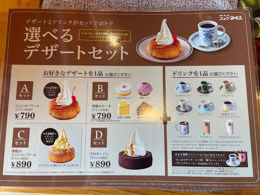 Read more初めてコメダ珈琲店にきました。がこのゆめタウン店は元々多分焼き肉店を居抜きで改装しているのでTVとかで見た他のお店とは若干違います。何も知らなくて、ショッピングセンター内の他のお店がお昼時で劇混みで空いてたこの店に入ったんですがランチメニューがない❗ひとづてでモーニングメニューは美味しいと聞いてたのでランチメニューもあると勝手に思ってました。高いんですよコーヒー450円に食べ物頼んだらひえーな値段。他の某有名🍔の倍位の値段になるが、もう出る事はできない❗️ので、私がミニシロノワール限定ピスタチオクリーム乗ったセットで主人はフィッシュバーガー単品です。二人で驚きました笑いましたバーガーの大きさに某有名🍔の倍の大きさここはアメリカか!と言うくらいの大きさで480円二人でシェアしないと食べれません結果ここにして良かった!ただナイフとフォーク頼んでね大きいので。味は全て美味しい!なの...