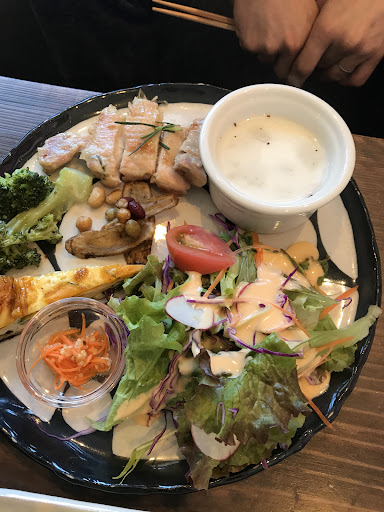 Read more平日のお昼に行きました! 他の方が書いているようにお店に行く手前の道は 狭くてちょっと怖かったです💦 子連れでしたがベビーカーを入れられる席を案内して頂けました! 入口は段差があったので抱っこして入って中で乗せました。 魚のランチは終了していてお肉のみでしたが とても柔らかくて美味しかったし プレートにはいろんな美味しいものがのっていて とても楽しめました💕 スープもついていて女性は満足できますが 男性には少し少なめかな? デザートも+330円で頂きました。 無花果のロールケーキにしましたが スポンジ部分がもちっと?ねっとり?していて すごく美味しくて、無花果はサッパリしていて 食べ終わった後に食べる前に戻りたい!と思いました(笑) ゆったりした時間を過ごさせてもらいました! 店員さんはとても温かく、気が利いて素晴らしかったです🥰 また近くによる...