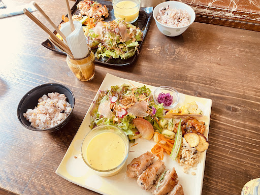 Read more人気のお店で予約入れた方が良いと聞き予約して平日に行きました。 以前に予約電話した時に、その日は臨時休業だと言われ仕方なく諦めましたが、臨時休業の場合もあるのでやはり予約電話はした方がいいと思います。 お店は、住宅が立ち並ぶ細い坂道を上りきった所にあります。 片側は少し深めの側溝がありそれぞれの家の車が出入りする部分だけに蓋があるようで運転が苦手な人にはお店を出る時に少し不安を感じるかもしれません。 今回はランチのみを注文しました。 メインとスープ、野菜がのったワンプレートと、少し小さめなご飯茶碗に半分ほどの雑穀米のようなご飯がついてます。 ご飯少なめで、とお願いしたわけでもありませんがこの量がお店の定量なんでしょうね。 思ったより量が多いと思ったお店は数々ありましたが、初めからこんなに少ない量は初めてでした。 ご飯好きな私にはかなり物足りなかったですがお味も良く器も...
